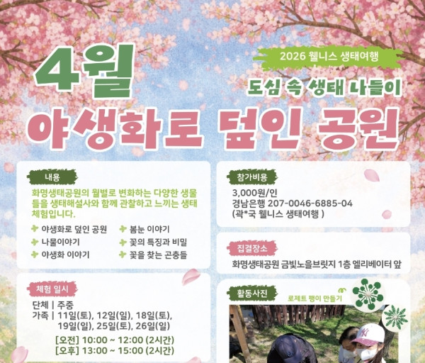 * 체험일시 : 4월 11일(토), 12일(일), 18일(토), 19일(일), 25일(토), 26일(일)