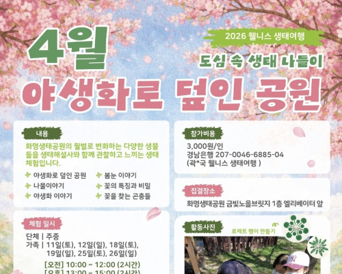 야생화로 덮인 공원 (참가비)1인당 3천원(경남은행 207-0046-6885-04 곽*국 웰니스 생태여행)