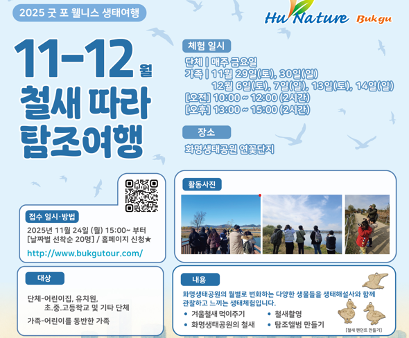 * 겨울철새 먹이주기, 화명생태공원의 철새 탐조, 철새 촬영, 탐조앨범 만들기 등