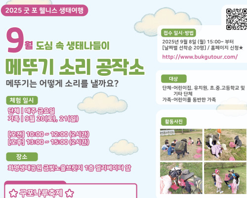 메뚜기 소리공작소 (체험비)1인당 3,000원(경남은행 207-0046-6885-04 곽*국 굿포 웰니스 생태여행)